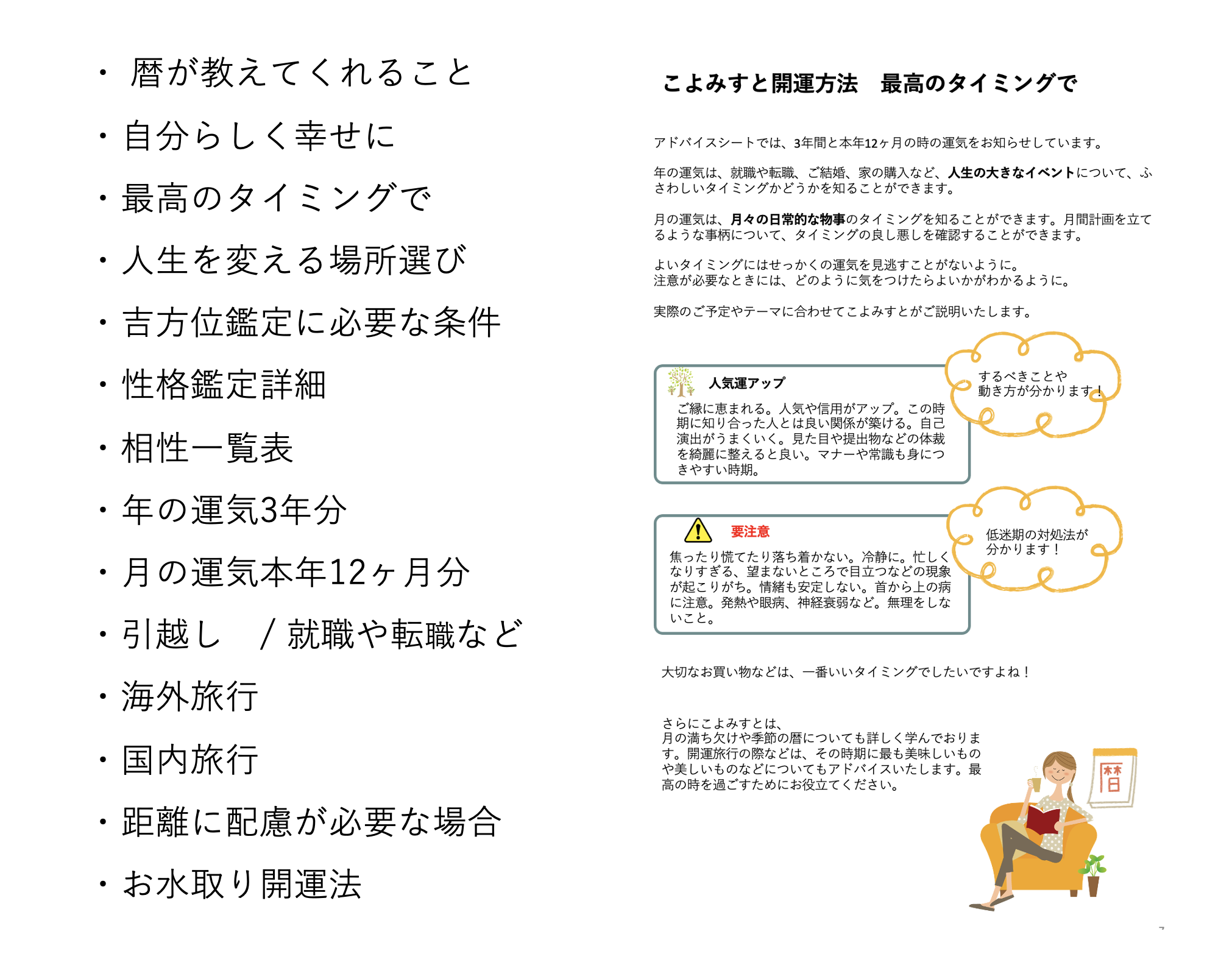 30ページを超えるボリュームの鑑定書とともに、専門的に学び経験豊かな認定こよみすとの丁寧なアドバイスを受けることができます。